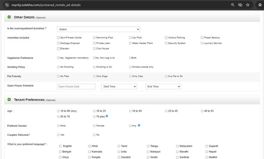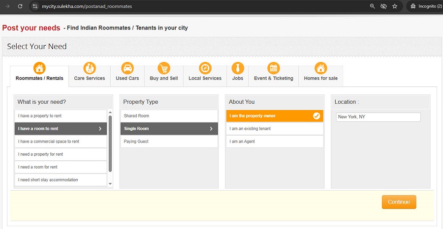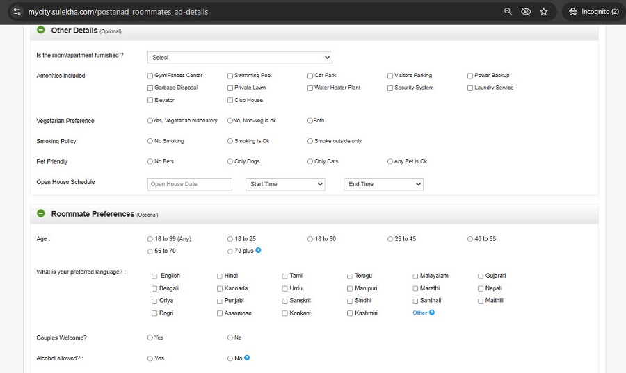 1) How do I post a roommate/rental ad on Sulekha? On Sulekha, you can post ads under two categories - Roommates or Rentals. Choose the right option based on your need: Roommates: Select this if you are offering or looking for a shared room/roomma